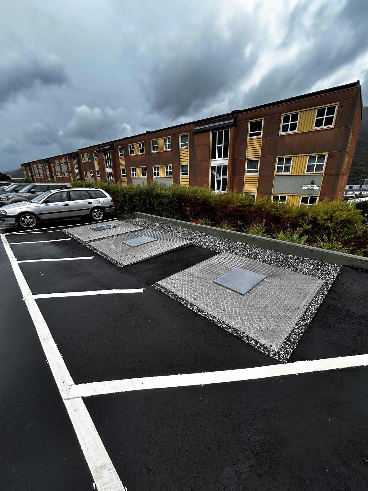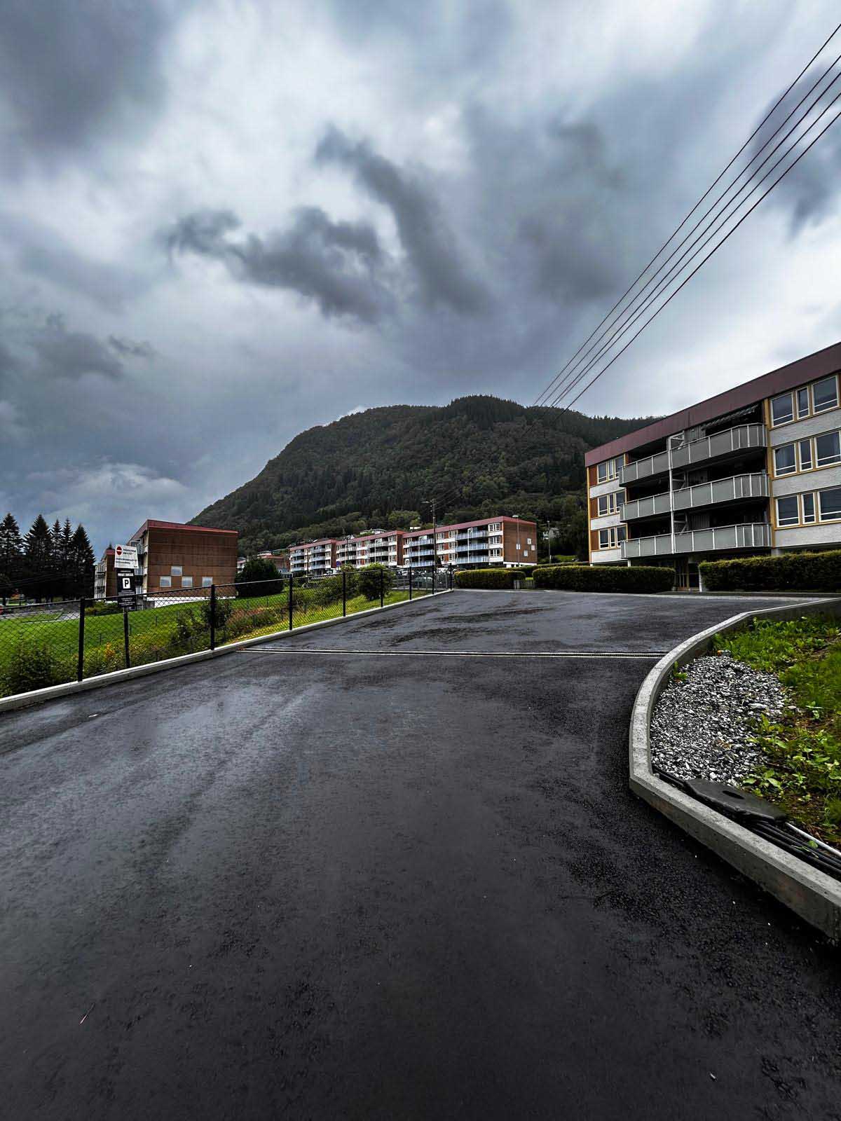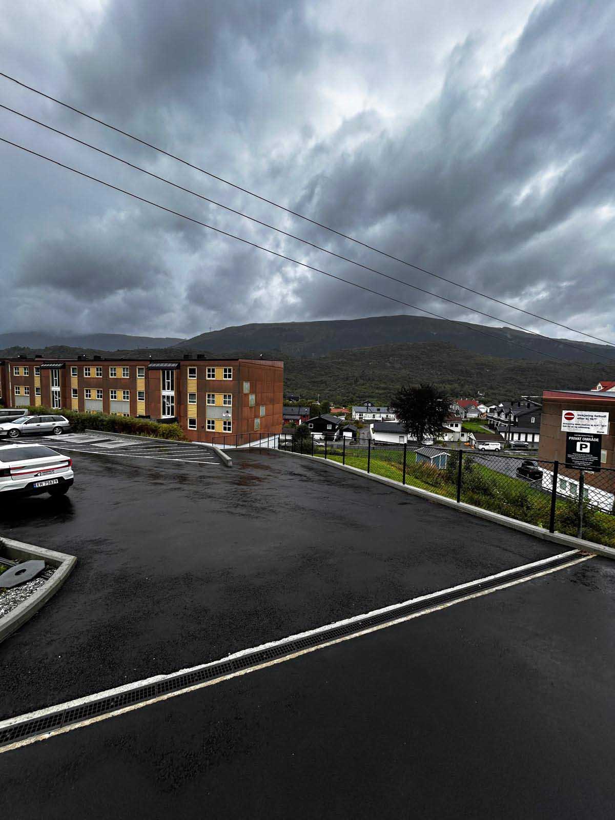 Det ble i samme prosjekt utført oppgradering av gangvei og parkeringsplass med både belysning, varmekabler, asfalt og gjerder.