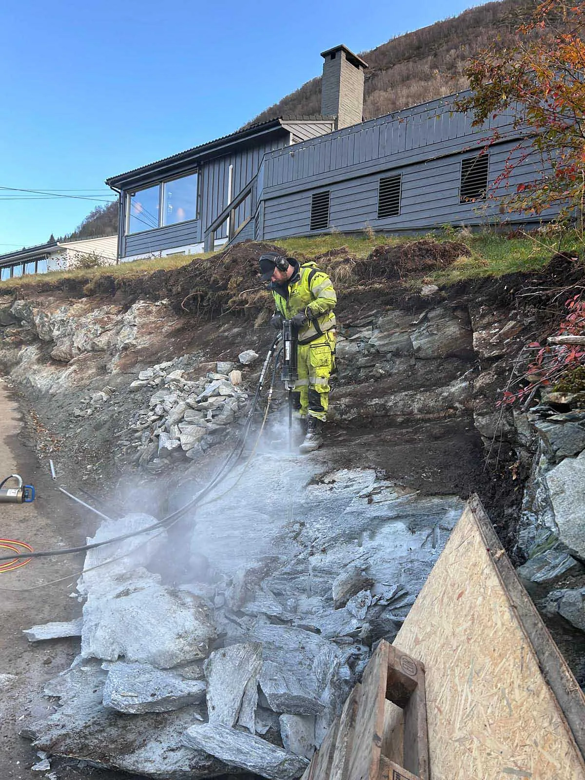 Fjerning av fjell og stor stein, kan utføres nært installasjoner, uten rystelser.