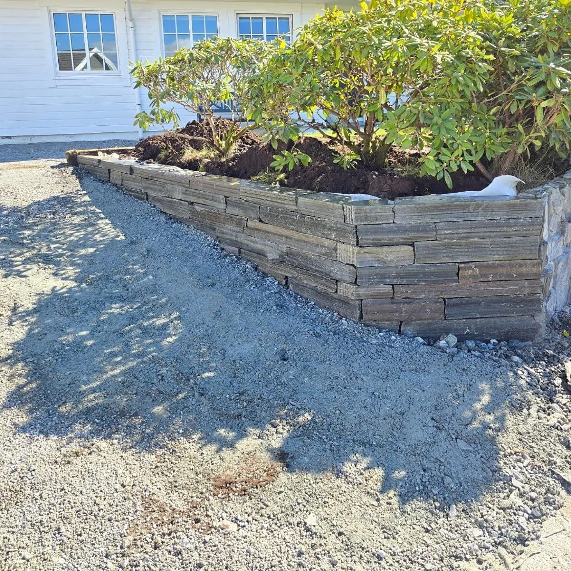 En natursteinsmur gir en solid konstruksjon og et tidløst uttrykk. Vi bygger murer som tåler belastning og vær, enten det gjelder hage, gårdsplass eller større anlegg. Resultatet blir både funksjonelt og estetisk.