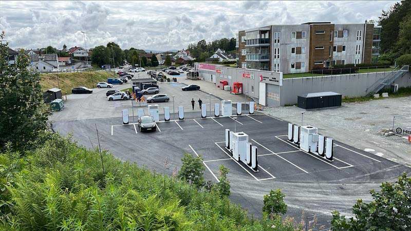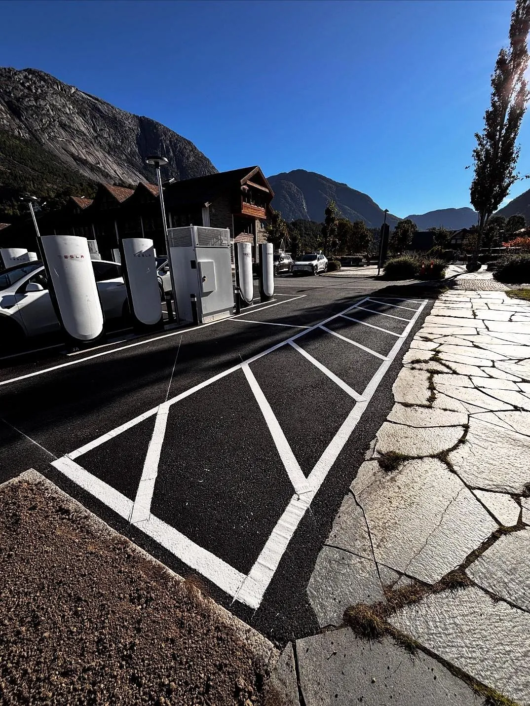 Etablerte komplett anlegg med hurtigladere, nettstasjon, HS-grøft, asfalt, belegningsstein, kantstein, oppmerking.
